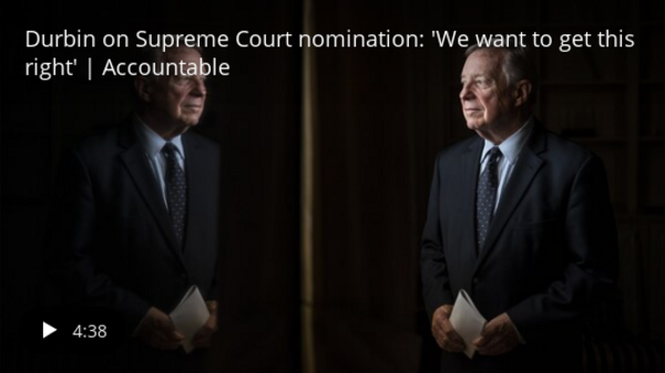 | | |  | From the courts | | Sen. Durbin is determined to make history and confirm Biden's Supreme Court pick | - "That job, helping answer mail for legendary Sen. Paul H. Douglas of Illinois, helped launch Durbin's six-decade political career. Now, after nearly 40 years of congressional service, Durbin is finally about to make his star turn on the Senate's biggest stage."