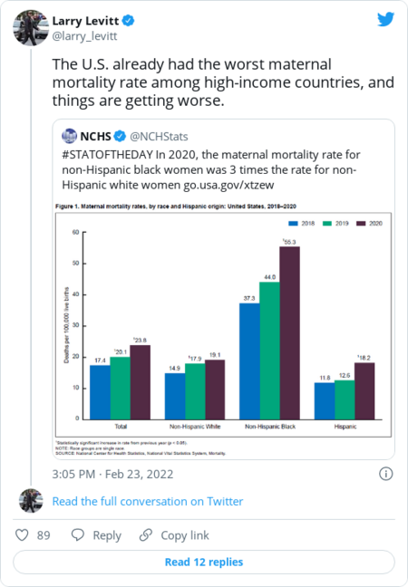 | | Rep. Frank Pallone Jr. (D-N.J.), who chairs the House Energy and Commerce Committee: | | | | | First in The Health 202: HHS is distributing another round of provider relief funds. | | Roughly $560 million will be sent to over 4,100 providers across the country this week, the department is expected to announce today. This comes as the omicron variant has fueled staff shortages in recent weeks, and facilities can use the funds to support recruitment and retention efforts. The distribution efforts are particularly focused around reimbursing a higher percentage of losses for smaller providers and bonus payments for those serving patients with Medicaid, CHIP and Medicare coverage. | | |  | Coronavirus | | Pregnancy-related deaths increase during pandemic's first year | Maternal and infant mortality rates in the United States are higher than other industrialized countries. (Charles Krupa/AP) | | | Pregnant women and new mothers died at a higher rate in 2020 — a rise that mostly afflicted women of color, according to a new report from the National Center for Health Statistics. U.S. maternal mortality rates have increased significantly over the past few decades. They rose by 14 percent overall in 2020 compared to the year prior. By the numbers: | - Black women experienced the most deaths, with 55 maternal deaths per 100,000 births — nearly triple the rate for White women.